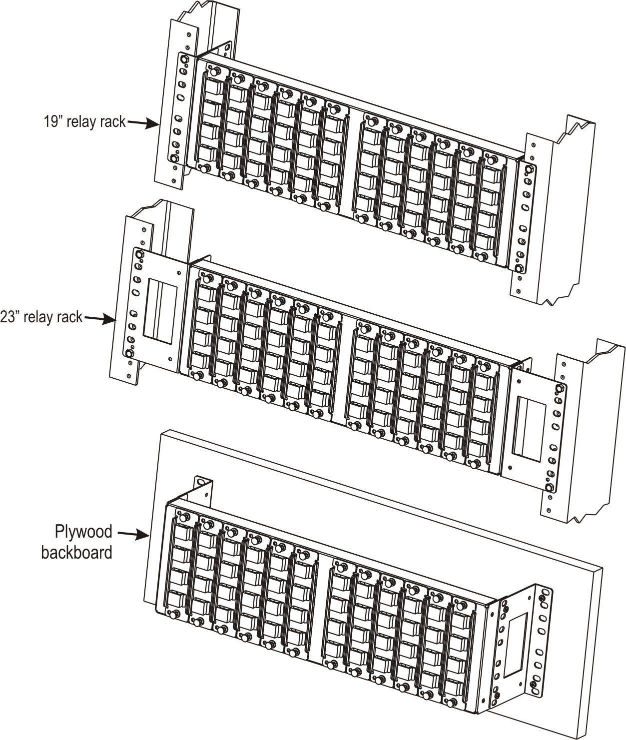 • 10-position LGX™ or VLX panel, 3U tall, rack assembly.