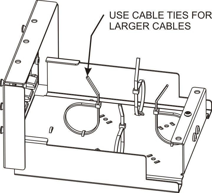 • Bottom cable management area can be configured for fiber clips or with cable ties.
